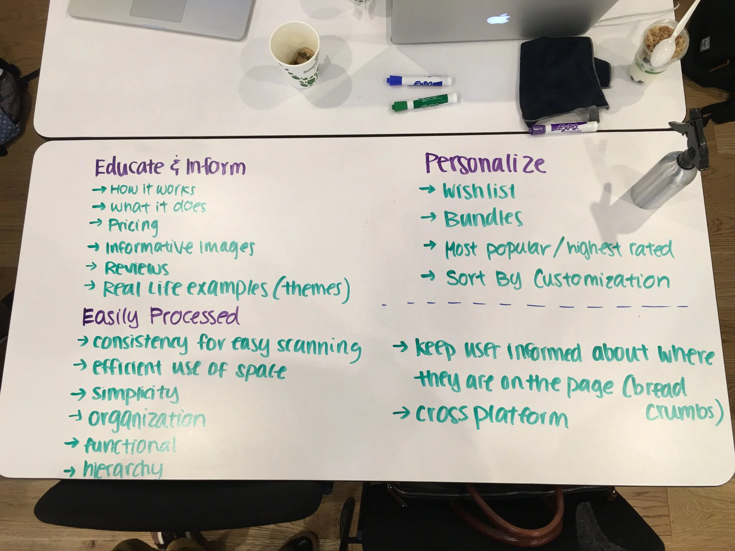 After receiving all the feedback we got from their current site, we tried to focus on certain problems. We then created what we considered the "ideal experience" to help guide us during the next stage.
