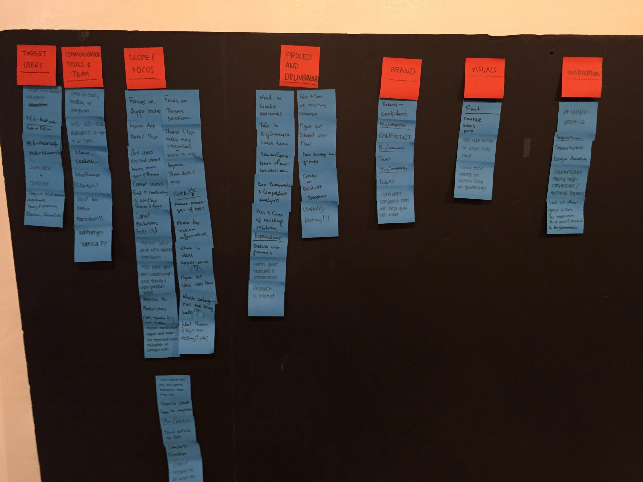 First and foremost, we had to understand the current situation. We created an account on BigCommerce and set up a website as if we were starting an online website. We searched through the app marketplace and did an affinity map.