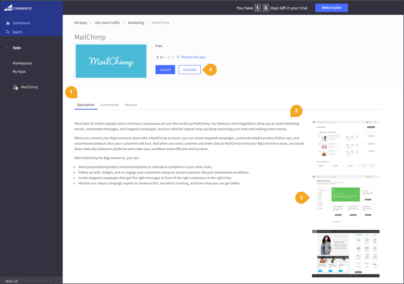 I created a clickable prototype for a user who is looking to install the Mailchimp app and wants to know more about what it can do for their website.