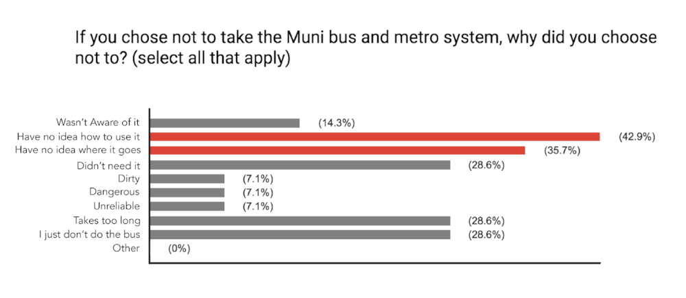Only 26% of the users from our survey used MUNI when traveling around the city.